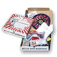 and Pajamas is a unique gift basket -- delivered in a pizza box -- in the mailbox.
